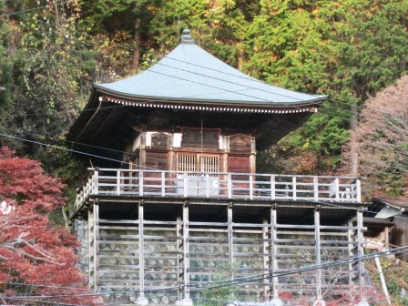 橋を渡ると橋場集落となり、右手の山の中腹に岩出観音堂が見える。 江戸中期に建立された懸崖造り建物で、木曽の清水寺と呼ばれる。. ![]() 時間の関係で下から眺めるだけであったが、本尊が馬頭観音で馬を育てる人々の侵攻を集めたという。 |