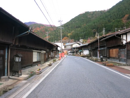 三留野宿に入る。![]() 小さな宿で、天保14年(1843)は、本陣 1、脇本陣 1、旅籠 32軒、総家数は77軒であった。 中ほどに南木曽町森林組合の看板が建ち、そこが本陣跡である。 幕末には皇女 和宮が宿泊、明治13年(1880)には明治天皇が一泊し明治天皇行在所記念碑が建っている。 ![]() 町並みは、緩やかな上り道に沿って続き、所どころに、「出梁造りの家」が並んでいる。 明治14年(1881)の大火で、ほとんどが消失した。 ![]() その先から、道は下り坂となる。 木曽川が荒れた時に、野尻へのう回路となっていた峠越えの「与川道」が右手の山に分岐している。 山を迂回する形で下っていくと、JR中央本線のガードをくぐり、その先で木曽川沿いの国道19号線に合流する。 |