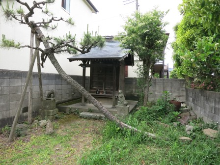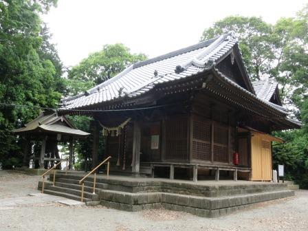広い自動車道に合流すると、すぐに大きな石鳥居と石段が目に入る。![]() 右側には石仏が並んでいる 、南に突き出した丘陵先端を長い石段で上って行き 尾根沿いの長い参道を進んでいくと、山田神社本殿に到達する。 山田神社は、明治 43年(1910)に近隣の村社である神明神社を 諏訪神社・八幡神社などとともに妙見社に合祀、その際地名にちなんで山田神社と改称されたという。諏訪神社は貞観2年(860)に創立されたといわれる。 本殿は 棟札により、天保13年(1842)の造営という。 |