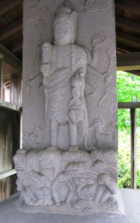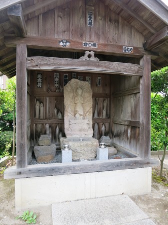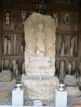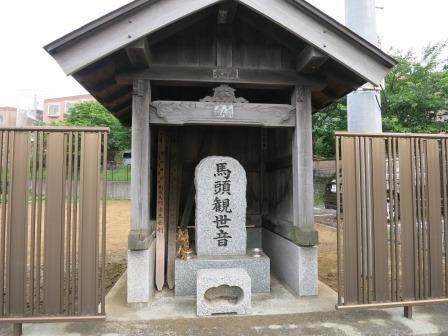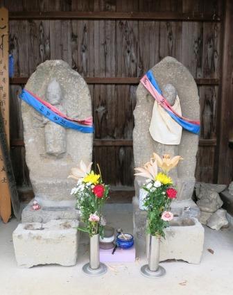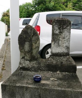 少し先左手にある馬頭観音 (後ろに風化の激しい古い塔が残されている) |