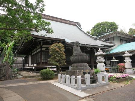 すぐ右側にある泉澤寺は、延徳3年(1491)多摩郡烏山(今の世田谷区)に吉良氏の菩提寺として創建された。その後火災で焼失した為 天文19年(1549)に現在地に移転した。 吉良氏は、この地の税を免除して居住を促し、門前市を開いて繁栄を図った。 夏の泉澤寺の門前市は、世田谷のボロ市と並び広く知られた、という。 本堂(左)は、安永7年(1778)に建立されたもの。 |