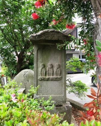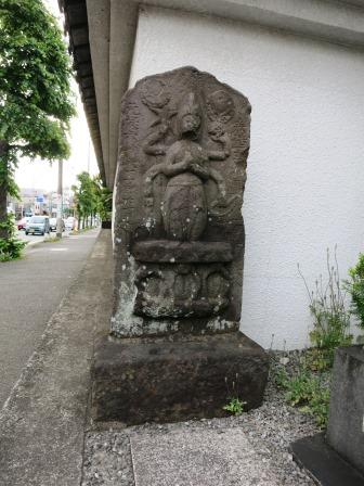 ENEOS の手前、左側の庚申の地蔵尊 (台座に3猿) 元禄16年(1703) |