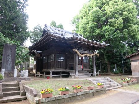 交差点から200m程を右に入ると、杉山神社がある。鳥居の先の参道わきに「震災復興の碑」が建つ。 関東大震災で被災した神社の再興の様子がある。 佐江戸の杉山神社の創建 は不明、古くから佐江戸村の鎮守で、慶長18年(1613)に再興したという。先ほど訪れた東漸寺が別当寺だった。 |