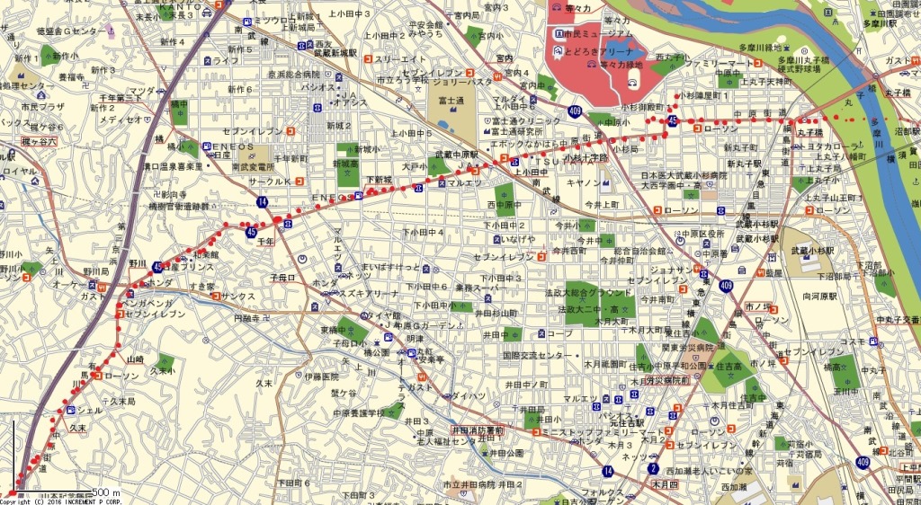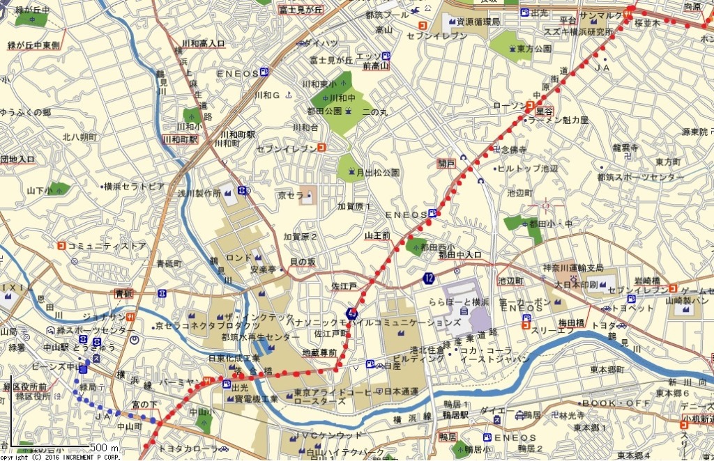 | 中原街道 ③多摩川-中山 散策ルート ①桜田門→高輪台 ②高輪台→多摩川 ③多摩川→中山 ④中山→桜ヶ丘 ⑤桜ヶ丘→寒川 ⑥寒川→平塚 地図→多摩川-野川 野川-佐江戸 佐江戸-中山 |