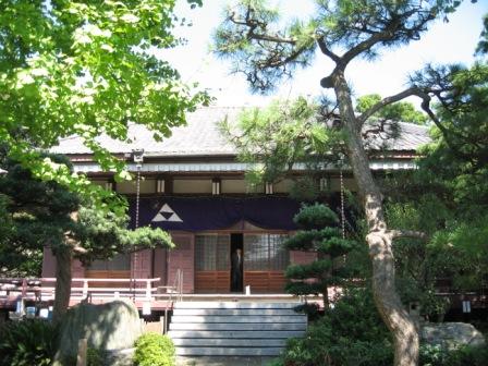| 合流地点左側高台にある。寺の説明板によると、「伊豆の豪族伊藤祐親の孫祐光が鎌倉時代に創建したという。、伊豆に流された文覚上人から祐親に贈られた上人自作の薬師如来像を本尊として、鎌倉に来て父祐清の菩提を弔うため、ここに一宇を建てた、という。その後浄土真宗に改宗。 徳川家康の鷹狩の時の言い伝えで、「花立薬師」ともよばれる、という。 |