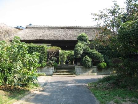 | その民家には大きな長屋門がある。 その先は、小菅ヶ谷小学校の北から先に丘陵の尾根伝いに北の舞岡公園に行く道があるので、そこにつながると思われる。 |