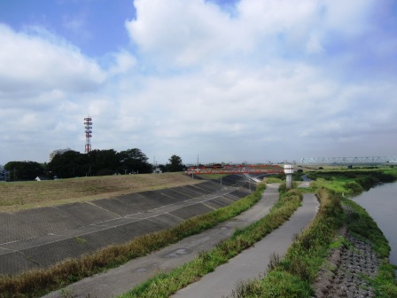 栗橋関所跡の碑が立っているということで探したが見つからなかった。(左右の利根川橋の間にあるはずであるが、歩道が左側の橋にしか付いていないため、中に入れなかった。) |