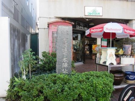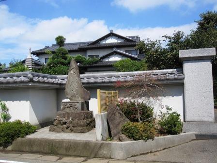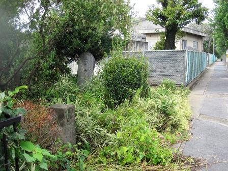 | この辺りの小さい川を渡っていた橋が、静橋と言ったというが、この橋かどうかは分からない。 細い旧街道をすすむと、自動車道(公方通り)の手前に、明治時代の顕彰碑が立っている。 |
