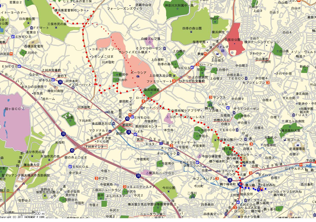 中の道 3-B.鶴ヶ峰-長津田 (上の道への連絡道) 地図 @鶴ヶ峰−市民の森 A市民の森−成瀬