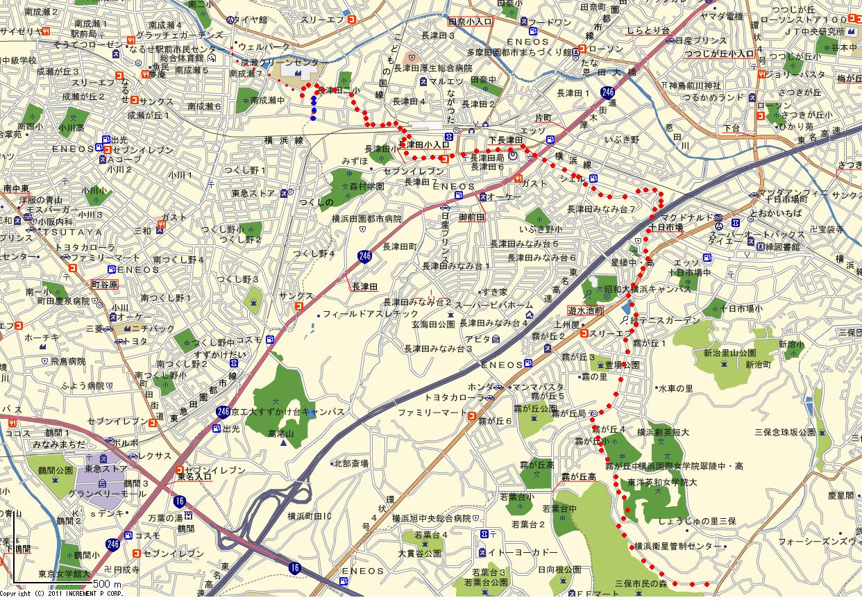 | 東光寺跡を求めて、長津田第二小学校の南側を通る旧街道のさらに南側一帯を歩いたが、残念ながら見つけられなかった。 ただし、特定はできなかったが、この辺りというのは確かであり、古くからの交通の要所であったことも理解できた。 ここから長津田の駅までもと来た道を戻って帰った。 |