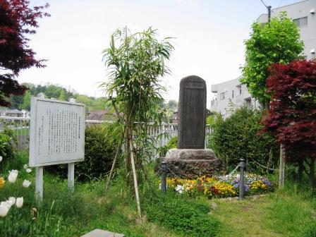| 交差点(5叉路)を越えて北に進み、突当りT字路を左折し、すぐ右折して坂道を上る。鶴ヶ峰浄水場の脇を進み、上りきったところに、駕籠塚がある。 鶴ヶ峰での決戦の知らせを聞いた重忠の妻はすぐに後を追ったが、ここまで来て主人の戦死を聞き、駕籠の中で自刃したという。その霊を供養したもの。 |