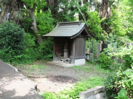 東名高速の下を走るバス道路を越えて、東名高速の北側に並行している細い道を横浜線に向かって進む。 最初の角を左に進むと、地蔵堂がある。 |
