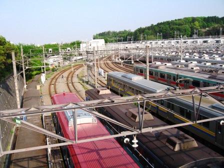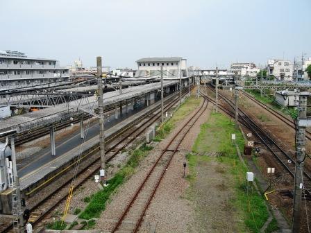 | 神社から線路に平行して東に下りる道は、長津田駅前から西北に進んでくる旧街道にぶつかる。 そこで田園都市線の跨線橋を渡る。 |