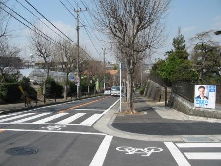 鷺沼駅方向に向かうが、駅前を左手に見て、北東に進む。この辺りから緩やかな丘陵上の道を通り、宮前平駅までくだることになる。小台一丁目あたりには、頼朝がここを通った時に、乗馬の鞍を松にかけて休んだという「鞍掛け松」という大木があったという伝説があるという。 |