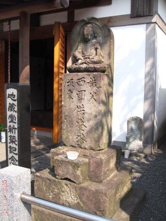 梶ヶ谷駅への入口を過ぎて200mほど進むと、新しい地蔵堂がある。 子供の授からない夫婦が西国の百霊場を巡拝して、子供を授かったのでお礼に地蔵尊を建立したという。「都築橘樹 酉歳地蔵」とある。第18番札所という。右手には弘化4年(1847)の秩父西国坂東供養塔が立つ。 |