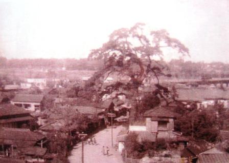 交差点から二子新地の駅の方に向かい、駅を過ぎて100mほど進むと、「諏訪一本松之跡」と刻まれた石碑が建つ。多摩川を流す船頭たちの目標になっていたという。 (写真は溝口駅前の案内板から) |