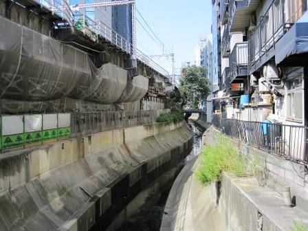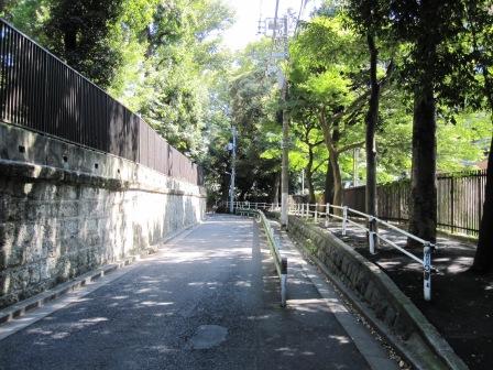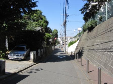 | 前回の山手通りへの出てきた道まで戻り、 宿山橋で目黒川を渡る。突当りを右折した後、急な坂道を上って丘の上を目指すことになる。 |