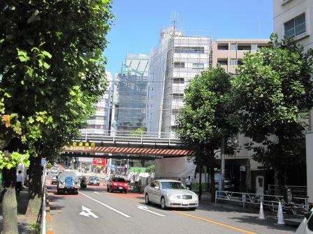 | 旧山手通りは、両側のビルのデザインは洗練されており、代官山への散策に来る人も多く、思わずさらに西に進んで西郷山公園まで行ってしまった。目黒川の北側の丘陵尾根に沿って進んでおり、公園から南西への眺めが素晴らしく、そこからは富士のも見えるという。 旧街道は、猿楽塚から北に下り、山手線の陸橋手前で、左に向かい渋谷川を越えて、再び台地に上って行ったという。 そこで、代官山交番前までもどり、代官山駅入口を越えて坂を下って行く。 |