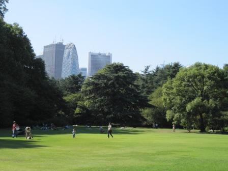 鳩森八幡神社から、旧街道は真北に向かっていたと思われるが、JR線千駄ヶ谷駅と新宿御苑が広がっており、太宗寺までは消えている。 そこで、千駄ヶ谷駅の西側ガード下を抜けて千駄ヶ谷門から新宿御苑にはいる。 しばらくの間、広々とした苑内をゆったりと歩く。木々や草花に名前がつけられ、見所も数多くあるがそれらは次回の楽しみにして、北側の新宿門から外に出る。 |