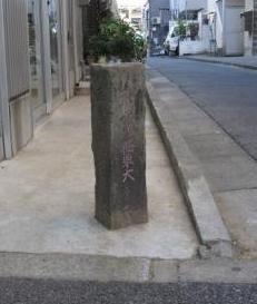 | 東側の箱根山通りという坂を下り、信号で西に向かい学習院女子大学の門前までいく。そこから北に向かっているのが旧街道という。 その先が早稲田通りで、横切って巣鴨信用金庫の脇を北に向かう細い道を進む。その角に比較的新しい道標が立っている。 「北 面影橋 鬼子母神 東 穴八幡早大 西 高田馬場」と刻まれており、大正15年(1926)とある。 |