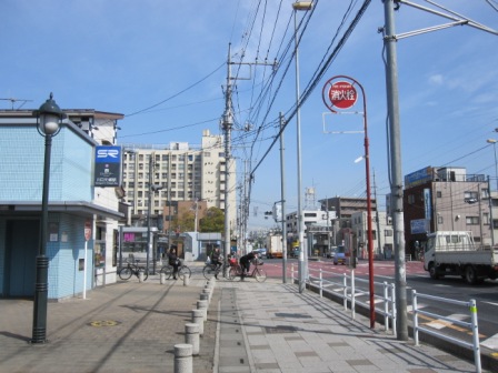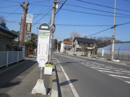 | 境内左手奥に石塔など並んでいる。 芳賀氏の「探索の旅」には、元弘3年(1333)の板碑があると書かれており、探したが見つからなかった。 新芝川を渡り、鳩ヶ谷変電所前の交差点の先で、自動車道は岩槻街道と日光御成街道に分岐する。 右側を進む。 |