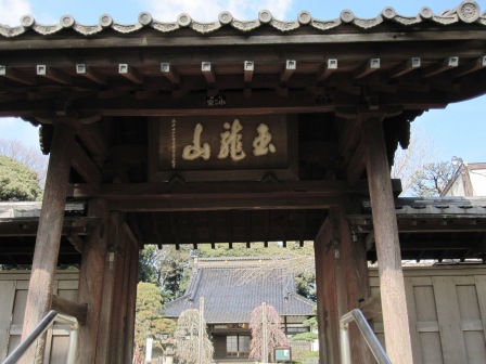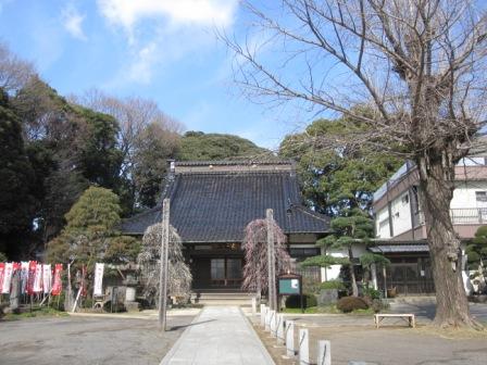 | 文明8年(1476)大田道灌の開基といわれるが、明応7年(1498)に再建された曹洞宗の寺である。石段の 鐘楼が立ち、広い境内と、周りが大きな樹林で囲まれた落ち着いた寺である。 この樹林は、鳩ヶ谷市の「ふるさとの森」に指定されている。 湧水のある公園の脇を通り、北東に坂道を上がり、もとのバス道に戻る。 |