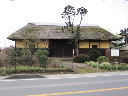 | 神社から100m先の北側に本陣の表門、すぐ先の南側に脇本陣の表門が残っている。 大門宿は元禄10年(1697)に正式に発足(本陣:1、脇本陣:1、旅籠:6) 会田家が、本陣、問屋を務めていた。将軍の日光参詣のときは、岩槻に宿泊したので、ここでは休憩する程度であったという。 茅葺の長屋門で、番所が付いているのが特徴であり、昭和44年の解体修理時に、元禄7年(1694)建立、文政7年(1824)修理の銘文が発見されたという。 |