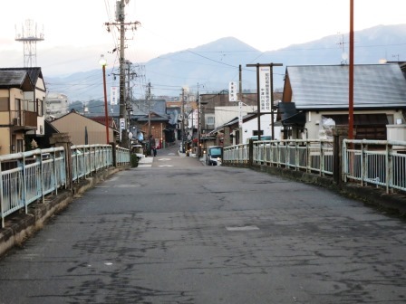 右に男だる川を見ながら広い舗装道路を進んで行き、その先で合流した蘭川(あららぎ)に架かる橋をわたる。すぐに左手に橋場道標がある。「左 旧道つまご 右志ん道」とある。左手の細い道を進む。![]() 左に蘭川を、右に田畑をみながら、300m程さきで、国道256号線を横切る。 右手には民家が少しずつ増えてくる。 |