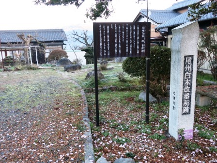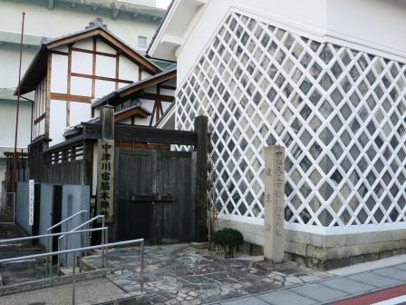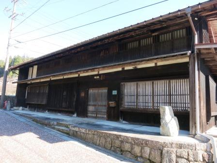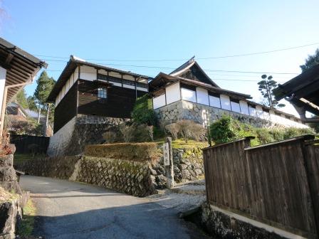 すぐ右に中津川村庄屋跡の大きな石柱のある民家がある。 江戸中期の建築と推定され、「曽我家住宅」と呼ばれる。 旧中津川村の庄屋・脇本陣をつとめたこともある肥田家の建物であった。 その向かいの駐車場の入口に本陣跡の説明板がある。「本陣の入口には、5軒続きの長屋が建ち、その中央の1軒分が門となり、右手の1軒分は問屋場で、門をくぐると表庭があり、その奥に建坪282坪の本陣があった」という。 |