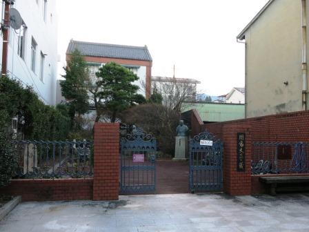 少し先に冠木門と板塀に囲まれた本陣跡がある。名主・問屋も務めた島崎家で、藤村の生家であった。 建物はは明治28年(1895)の大火で隠居所のみを残して焼失し、以後、隣の大黒屋の畑地になっていた。藤村の亡くなった後、隣の大黒屋が土地を提供し「藤村記念館が完成した。 ![]() ←焼け残った隠居所は、藤村の少年時代の勉強部屋であった。 その左奥の文庫には藤村の自筆原稿などが展示されている。 文 庫の建物の北側から、島崎家先祖の墓のある永昌寺の森がみえる。 |