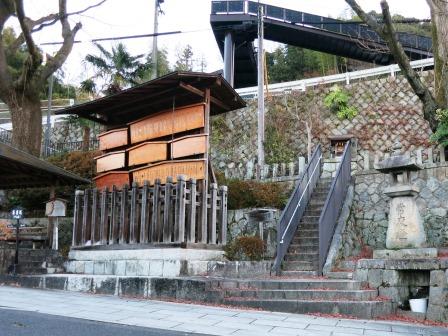 急な上り坂となり、そのさきで変形五叉路があり、その奥に観音堂がある。説明板によると、「木曽義仲が挙兵して京都に向かう際、木曽谷の南の押さえとして妻籠城を築き、その鬼門に当たる神戸に祠を建て、義仲の兜の八幡座の観音像を祀ったのが起こりという伝承があるという。そのため、木曽にゆかりの武将が手厚く保護してきた」という。 他に境内には、『「袖振りの松」の水舟』の説明板がある。 『木曽義仲が弓を射るのに邪魔になった松を巴御前が袖を振り、なぎ払ったといわれる「袖振りの松」が、虫食いの為伐採された。この松が、やく7mの水舟として残された』という。 |