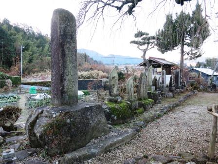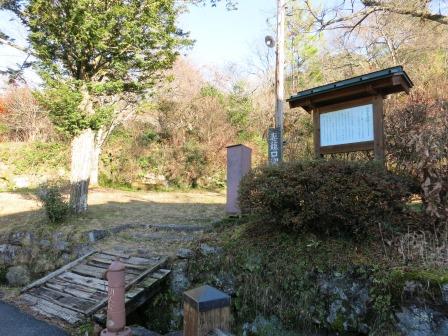 少し先の右手の林の前の空き地に、小さな案内板がある。「宝永2年(1705) 医王寺の梵鐘を鋳造したところから、このあたりは『かねいりば』とか『かねば』とよばれている」という。その下に「この奥 馬頭観音」とある。 遠すぎて詳細わからず。 |