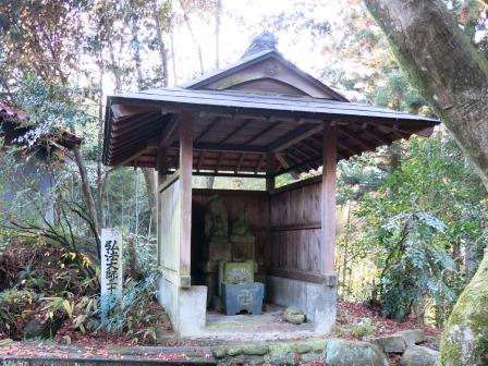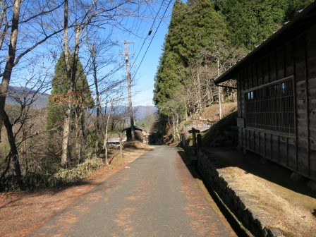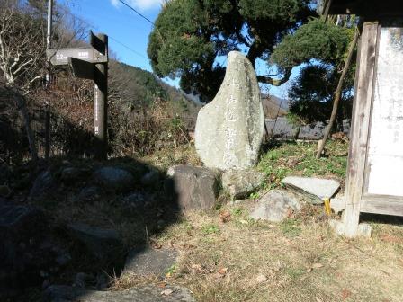 坂を上り切ると、与坂の立場跡である。 ここには「越前屋」という茶屋があり、米の粉の餅に黒砂糖を煮詰めて塗った三文餅を売っていた。 ![]() またこのあたりには白木を取り締まる与坂ご番所が置かれていたが、その後天明2年(1782)に先ほど通ってきた中津川上金へ移された。 向かい側には 弘法大師を祀った地蔵堂が建っている。 この先は、落合川の流れている谷あいに向かって山を下っていく。 |