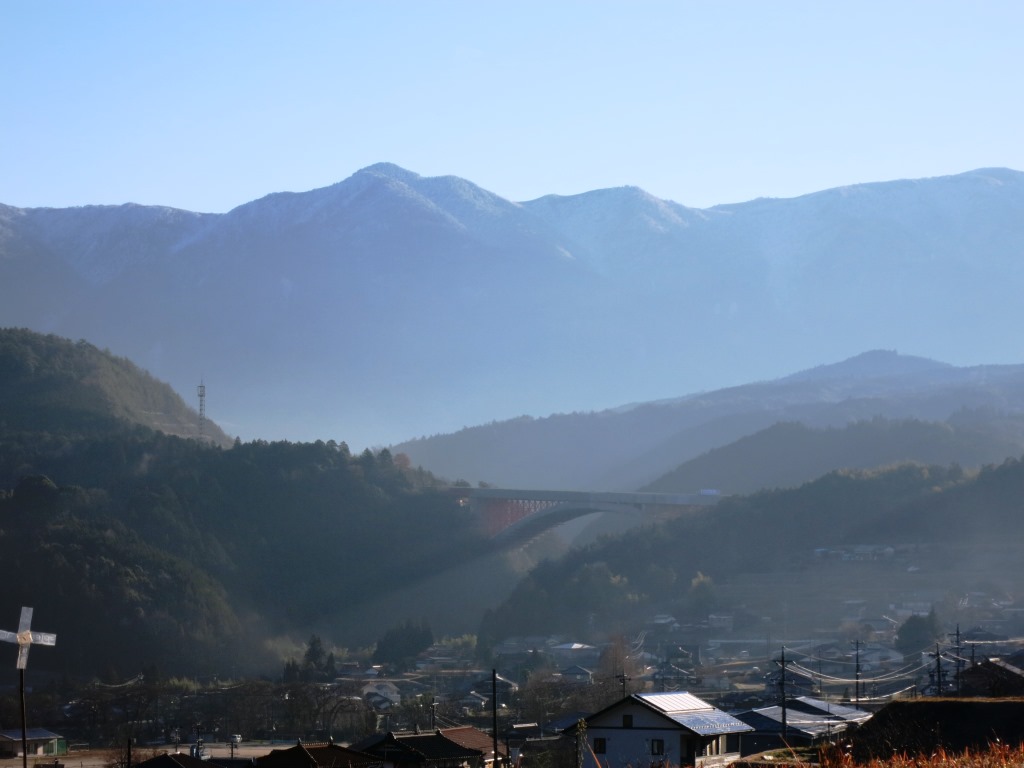 坂を下った先の谷間には、子野の集落がみえる。坂の途中、右側に一里塚跡の石柱がたっている。 中津川と落合との境を流れる三五沢を渡ると、再び急な坂が始まる。与坂という。 坂の途中で振り返ると、中津川方面の広大な眺めが広がる。左端の林が、覚明神社である。 ・・・・リニア新幹線は、ここ中津川のどの辺を走るのか、息を切らしながらふと思いを廻らせた。 ![]() ![]() |