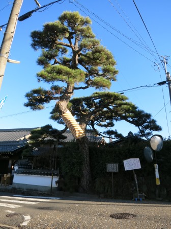 正面には形の整った松がある。「善昌寺の『門冠の松』(路上の松)とよばれ、樹齢は約450年という。慶長5年(1600)の創建といわれ、明治24年の道路拡張工事で東側に移されたが、松はそのまま残されたという。 |