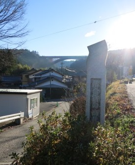 下り坂の左手小高い丘の手前に「馬籠城跡」の大きな説明板がある。 ここには室町の時代から砦があったが、その後戦国の時代 豊臣の傘下の木曽義昌が治めていた。 天正12年(1584)家康側の木曽攻略の際、木曽義昌は馬籠城を島崎重通(島崎監物?)に守らせたが、島崎は持ちこたえられず妻籠城へ逃れた。馬籠の集落は戦火から免れたという。 その後尾張徳川家の領地となった。 島崎は、妻籠。馬籠の島崎家の先祖となったという。 緩い坂道を下って行き、小さな川を渡った先には農地が広がる。 そこからは緩やかな上り坂となる。石屋坂の小さな石柱がある。 |