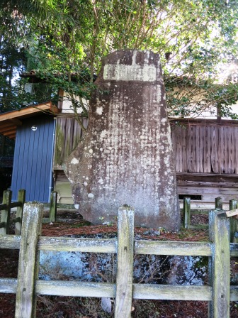 民家が少しずつ増えて、荒町集落に近づく。右手に 馬籠諏訪神社の鳥居があり、参道が奥まで続きその先はみえない。 脇には、島崎正樹の顕彰碑が建つ。 馬籠宿の本陣の最後の当主で、藤村の父で、「夜明け前」の主人公青山半蔵のモデルである。国学者平田篤胤没後の門人となり、木曽山林の解放運動にかかわった。長男の広助が解決に尽力した。 その島崎正樹を顕彰するための碑である。 |