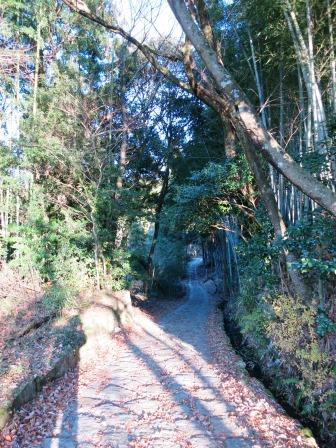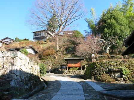 すぐ先の、こんもりした林の手前に、石畳への入口がみえる。 この先 難所と言われた十曲峠(じっこく)を越える坂道に、石畳が整備されている。 幕府は一里塚や並木道の整備は制度化して丹念に進めたが、石畳については熱心ではなかったという。皇女和宮の通行と明治天皇の行幸の時修理されたという記録が残っている。(説明板) 従来から保存されていた3ヶ所の石畳(約70m→史跡と指定されている)をつなぎながら、全長約840mの石畳として復元された。 |