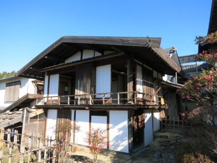 その向かい側に、熊谷家住宅がある。19世紀初頭に建てられた長屋の一部であるが、左右の建物が取り壊されたことから、長屋の間取りの右半分と左半分が残り、一軒の家として使用されたものという。![]() ![]() ここで妻籠宿の町並みから離れる。 |
