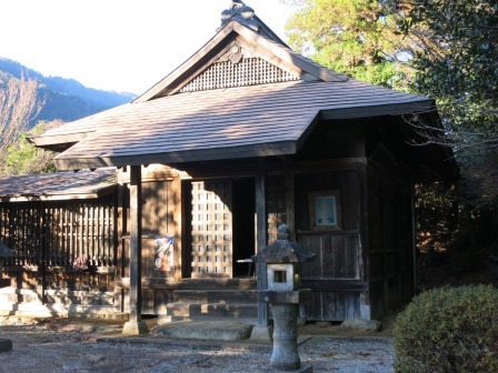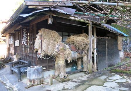 往時は7軒の茶屋があったが、今は牧野家住宅1軒のみとなっている。 江戸時代後期の建物で、当初は間口が10間半もある大きなものであったが、今は南側が切り取られ8間に縮小されている。冷たい山道を下りてきたと ころで、管理人の主人に熱いお茶と漬物、お菓子を頂き、休みを十分とった。最近は外国人も多くみえるとのこと。![]() |