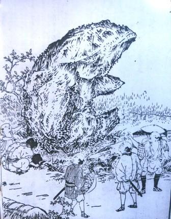 少し先には、中山道三名石のひとつ 鯉岩がある。明治22年(1891)の濃尾地震で頭部が落ちて形が変わってしまったという。文化2年(1805)の木曽名所図会にある鯉岩→ |