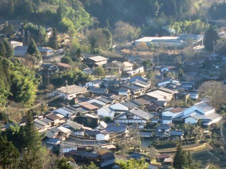 坂の途中から落合宿の眺め |