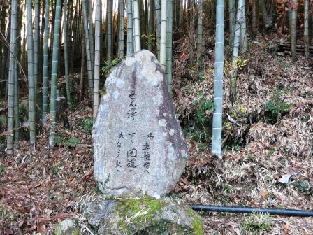 間もなく、左右の塚が残っている上久保の一里塚がある。 その先には下り坂の石畳があり、分岐点には「せん澤」の道標が建っている。![]() |