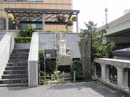 | 西側には、「江戸歌舞伎発祥之地」の碑が建つ。 寛永元 近くに「京橋大根河岸青物市場蹟」の石碑があり、また京橋川や大根河岸、白魚河岸、薪河岸などの説明板がある。それによると、数寄屋橋寄りにあった大根を中心とする野菜市場が火災に会い水運の便の良い京橋川沿いに移転してきたことから始まったという。 |