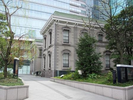 | その先で昭和通りと交差ししている新橋交差点を渡るが、その西奥に「旧新橋停車場」がある。 明治5年(1872)10月(太陽暦)に日本初の鉄道が、新橋(後の貨物汐留駅)−横浜(桜木町)で開業した。 国鉄民営化後、旧汐留駅跡地は開発され、旧新橋停車場跡地などが発掘され、国指定史跡に指定された。 平成15年(2003)その上に当時の新橋の駅舎と同じ場所・外観で停車場が再現された。 |