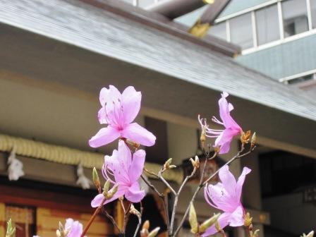| 説明板によると、平安時代中頃の寛弘2年(1005)に伊勢の内外両宮の分霊を祀り創建されたという区内有数の古社という。永年 また明治時代に活躍した力士「金杉藤吉」の名前がある力石が置かれている。 みつばつつじ |