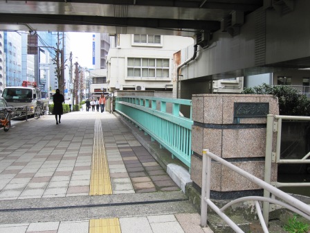 | 汐留川の埋め立てに伴い橋はなくなり、親柱が残されている。 その先に、「銀座柳の碑」が植え込みの中にあり 碑には、西条八十作詞 中山晋平作曲の歌詞が刻まれている。 |