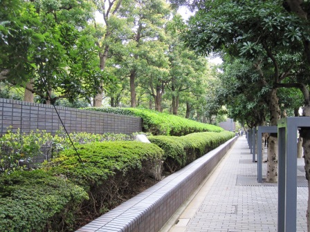 | しばらく進んで芝五丁目の交差点を北に進むと、NEC本社ビルがあり、その角を左折すると植え込みの中に「薩摩藩邸跡」の石碑がある。 NEC、セレスティンホテル、戸坂女子短大のあたり一帯に薩摩藩江戸屋敷の上屋敷があった。 慶応3年(1867)、西郷隆盛の江戸での挑発行為の結果この上屋敷が焼き討ちに合い、翌年の鳥羽伏見の戦いで始まった薩長を中心とする討幕軍と、幕府軍との戊辰戦争の引き金になった。 (中屋敷は帝国ホテルあたり、下屋敷は品川駅西のホテルパシフィックあたりにあった。) |