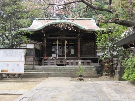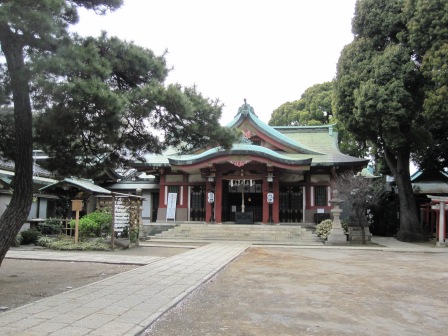 | その先の旧街道は両脇に住宅街となり、その東側奥には、しながわ区民公園がひろがっている。 天明の頃(1781〜89)に修験道寺院として厄神大権現を祀ったことからはじまり、明治維新後浜川神社と称したという。 |