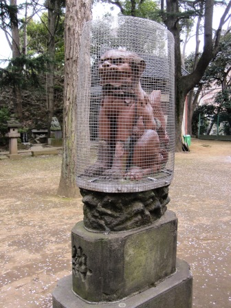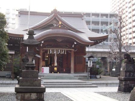 | 北口通りから京浜急行の新馬場駅を過ぎて第一京浜を横切り、品川神社に行く。源頼朝が文治3年(1187)に海上安全の守護神として安房国の洲崎明神(館山市)の天比理乃当スを勧請して創建。寛永14年(1637)家光により東海寺が建立され、品川神社がその鎮守とな 金網で覆われた文政13年(1830)の銘のある陶器の狛犬や、北品川宿の富士講により造られた明治2年(1869)の富士塚がある。 |